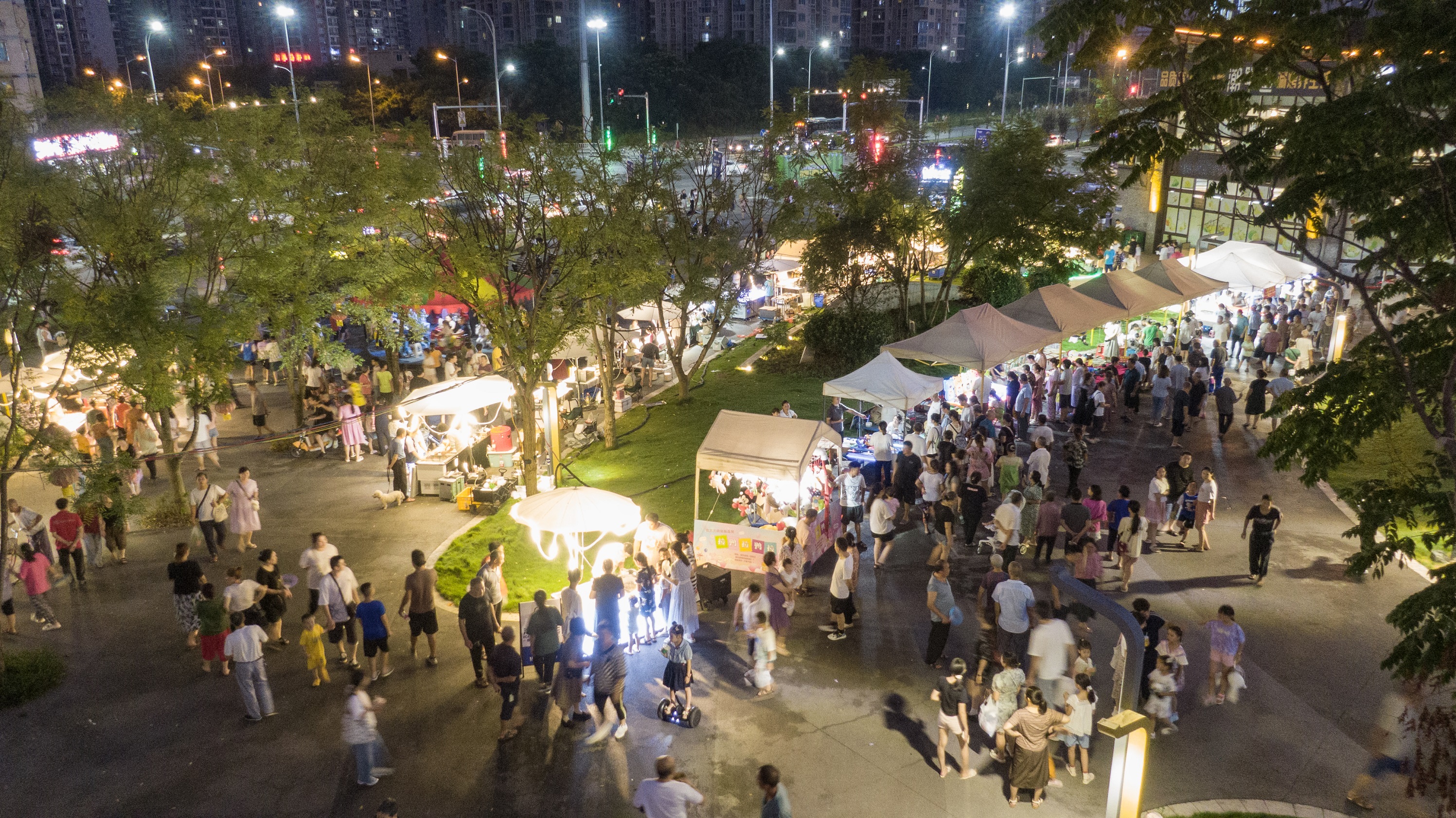 “國盛不夜城”位于西永豐文大道與建博路交匯處,是江北區(qū)通往高新區(qū)的重要交通要道。作為西永融創(chuàng)文旅城核心輻射圈內的體驗式公園主題美食不夜城,與文旅商業(yè)互為補充,成為高新區(qū)夜間消費的打卡地。